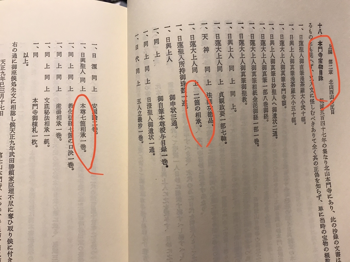 事実、北山本門寺の『宝物目録』には、きちんと『二箇相承』も『御本尊七箇相承』も『産湯相承事』も入っています。『富士宗学要集』第9巻20〜21ページの画像をそのままあげてみますので、読者の目でご確認ください。