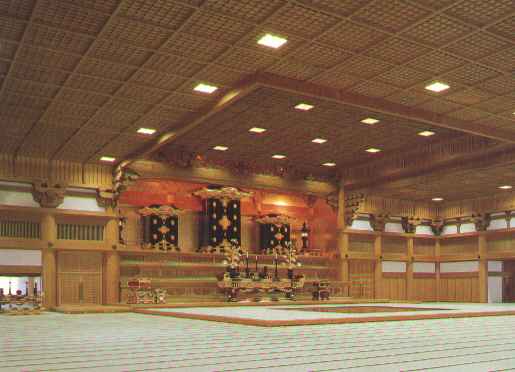 実際にはどのように安置されるのか。以下の画像は現在の新客殿になる前の旧・大客殿内部の画像です。確かに御座替本尊の左右に日蓮・日興の御影が並んでいるのがわかります。