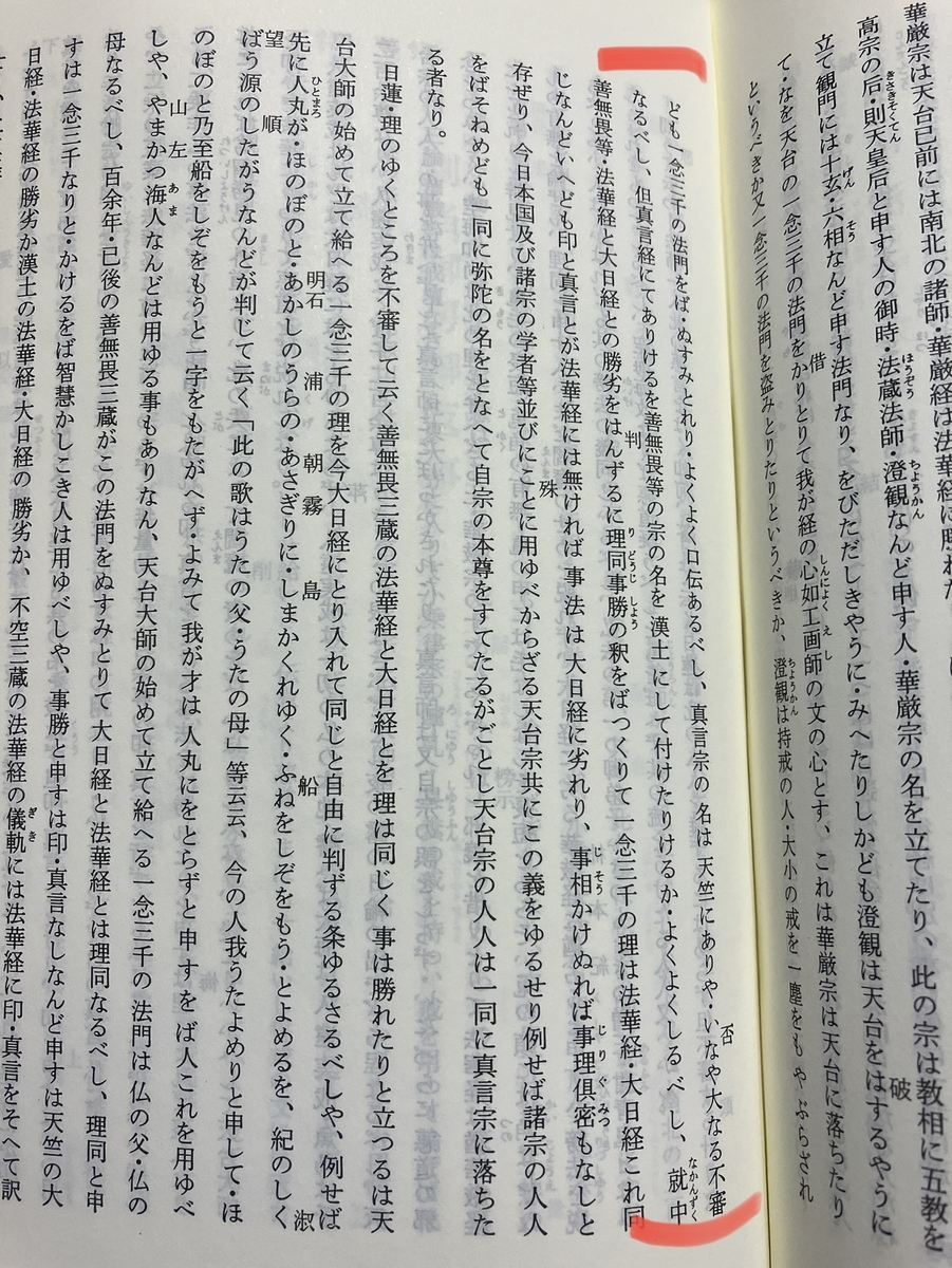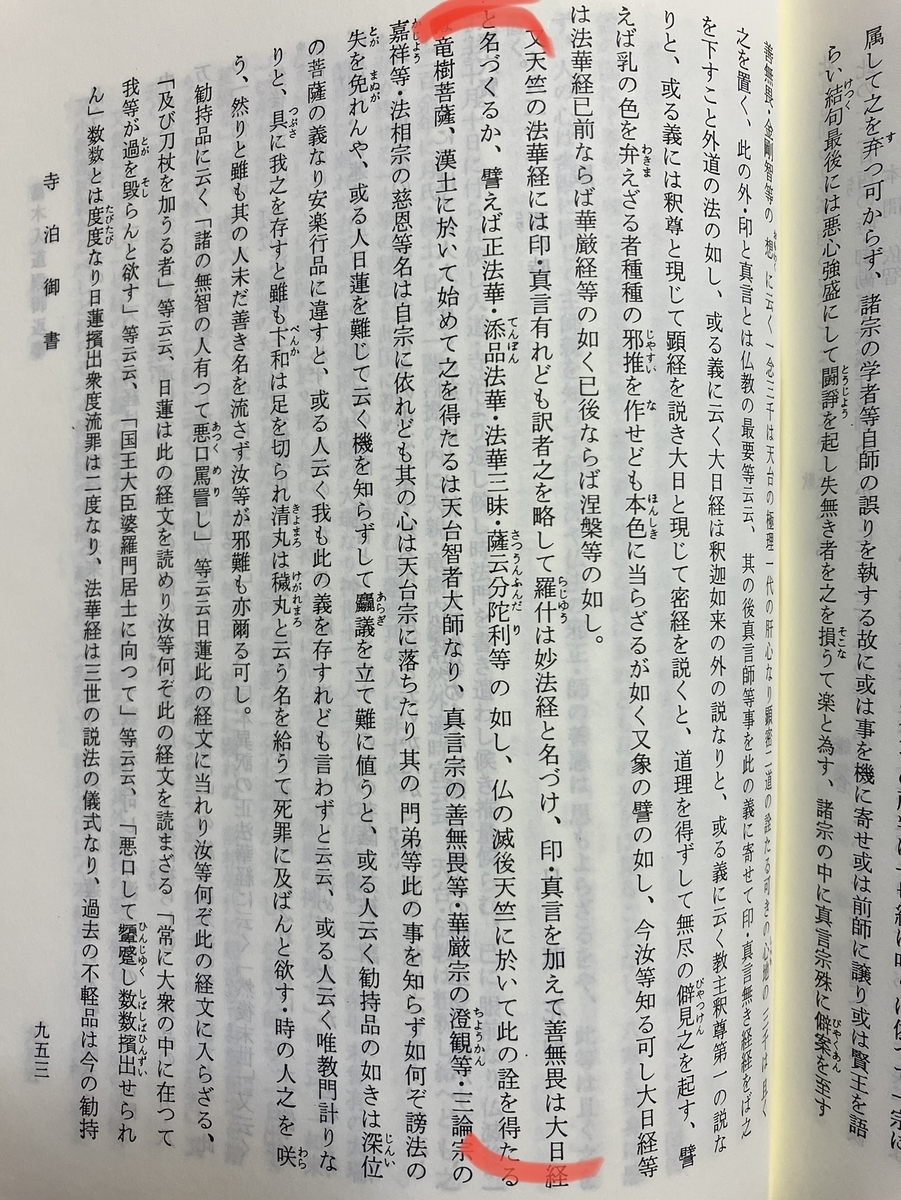 「又天竺の法華経には印・真言有れども訳者之を略して羅什は妙法経と名づけ、印・真言を加えて善無畏は大日経と名づくるか」