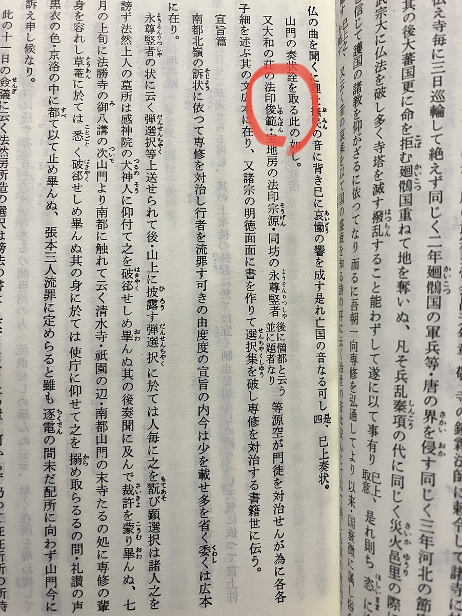 また真蹟不存ですが『念仏者追放宣旨事』にも「法印俊範」に言及する記述が存在します。しかしここでも俊範を「大和の荘」「法印俊範」と述べながら、特に師匠であるとするような記述は存在しません(同89ページ)。