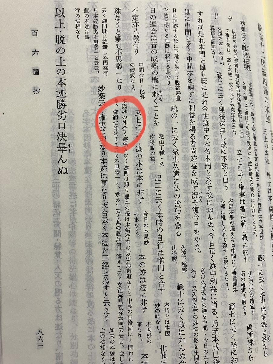 事実、『百六箇抄』では本迹不思議一なりとする根拠を俊範の発言としています(同861ページ)。