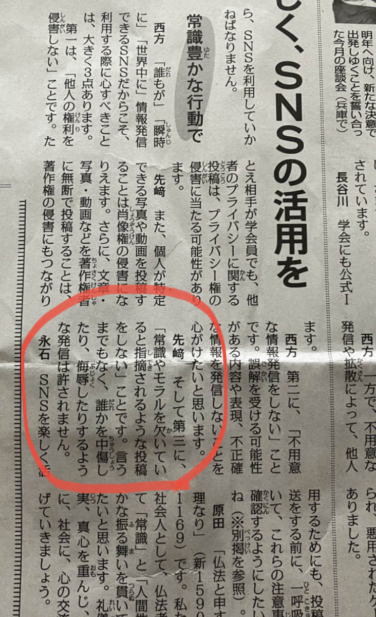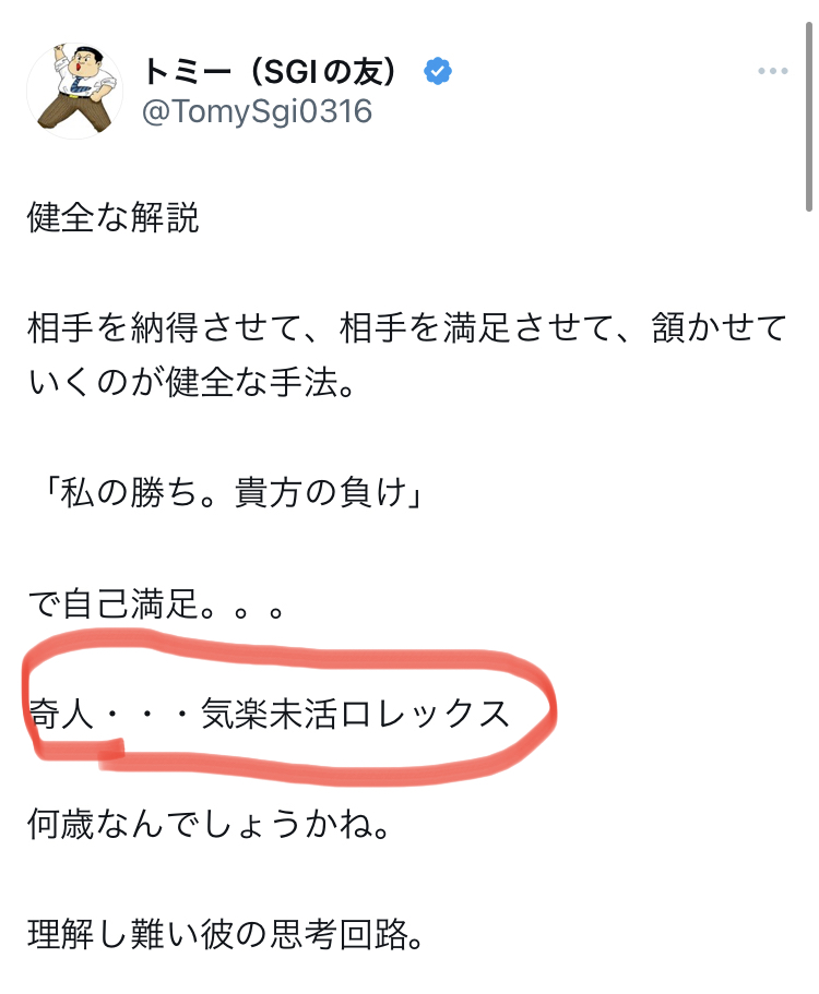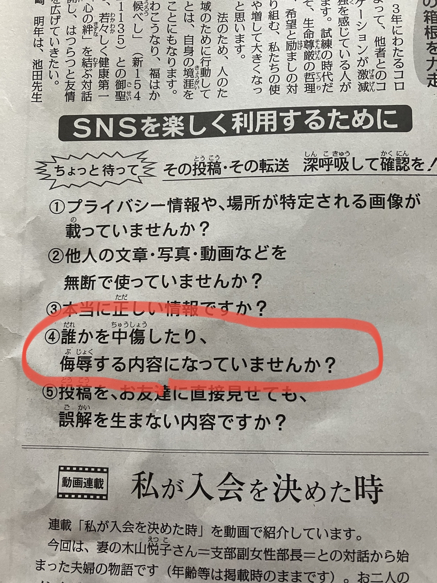 彼らの非難中傷は昨年の聖教新聞(2022.12.29付)掲載の紙上座談会の指導「誰かを中傷したり、侮辱したりするような発信は許されません」という内容にも抵触するものです。社会的にも糾弾・批判されるべき内容と考えますので、今回は彼らの非難中傷や侮蔑の発信をそのままに伝え、読者の判断を仰ぎたいと考えます。