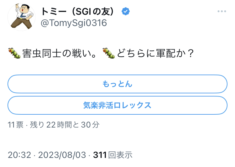 アカウント:@TomySgi0316