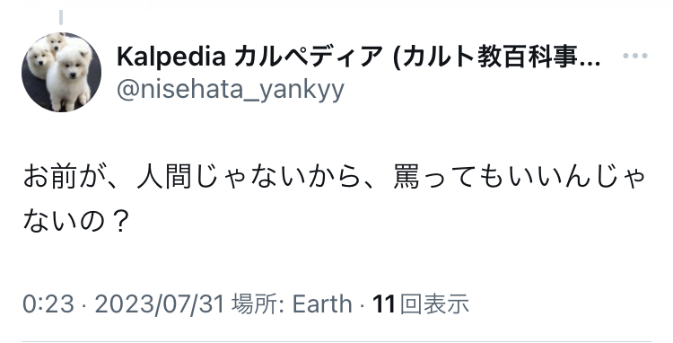 まあ、上記2つのブログ記事の書かれた2018年以前から、このようにSNS上で対象者を挑発する態度は見られます。これらの挑発は相手を論破することが目的ではなく、そのやり取りを見た信徒や一般の方が「彼らの主張はどっちもどっちだなぁ」という印象を抱かせ、それ以上自分の手で調べることを防がせることを目的としています。